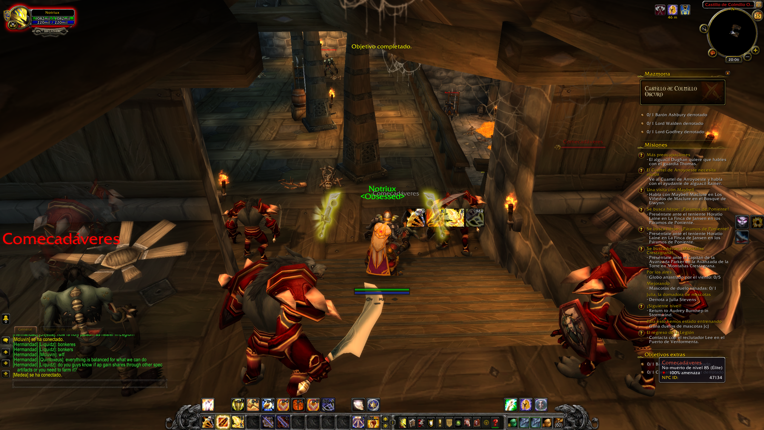 Al matar a los enemigos en la mazmorra Castillo de Colmillo Oscuro siempre sale objetivo completado