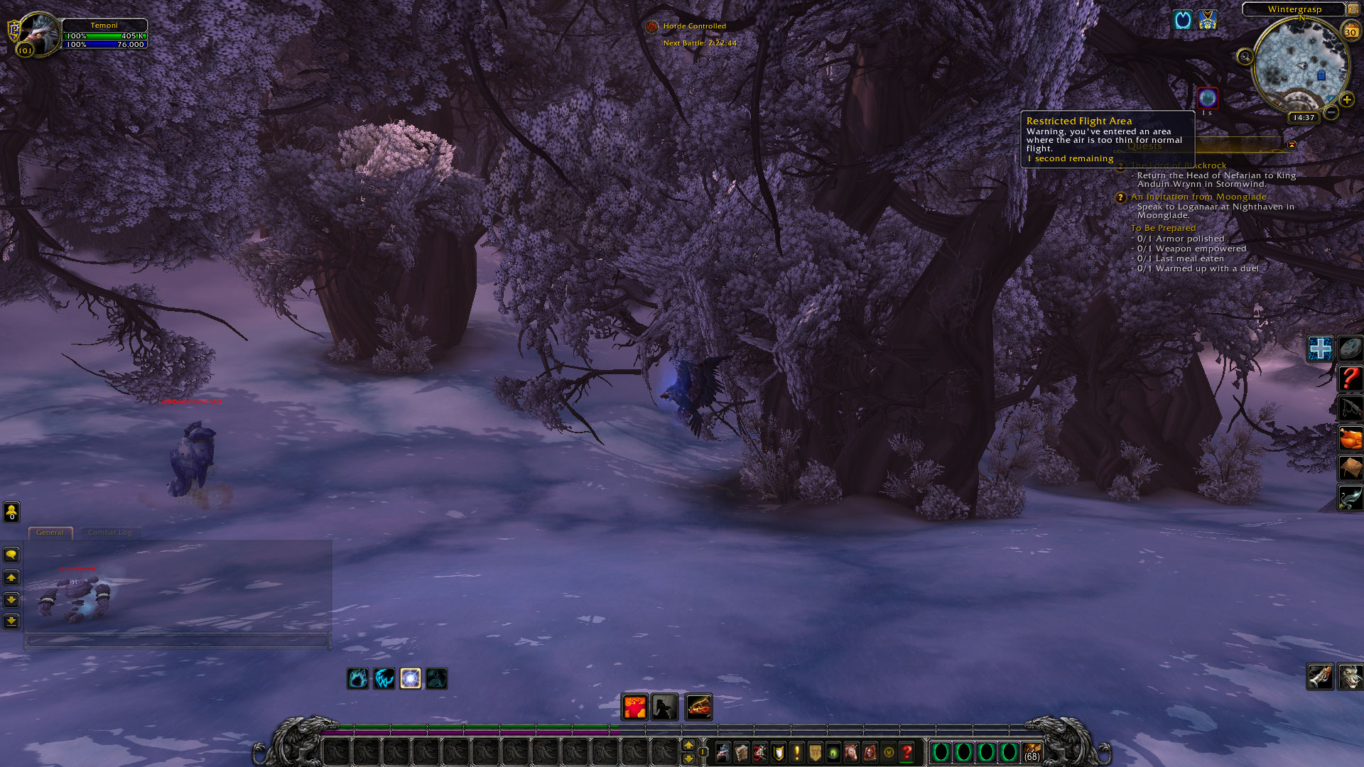 2- La forma de vuelo de druida funciona, pero enseguida Wintergrasp avisa que te va a desmontar.