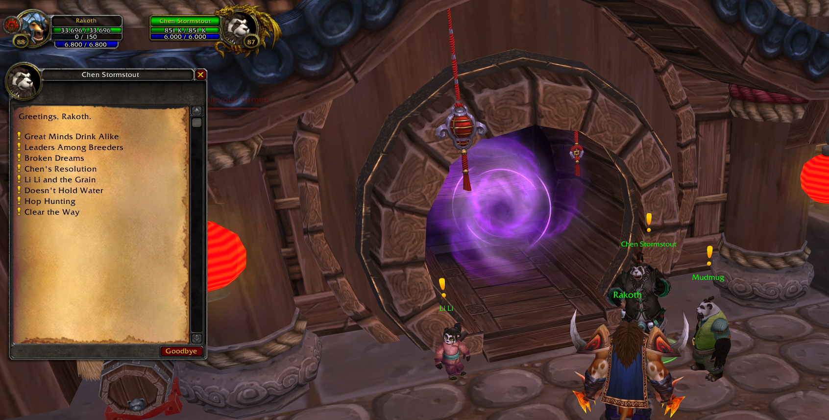 Same issue with Mudmug next to Chen Stormstout. ID# 56474.