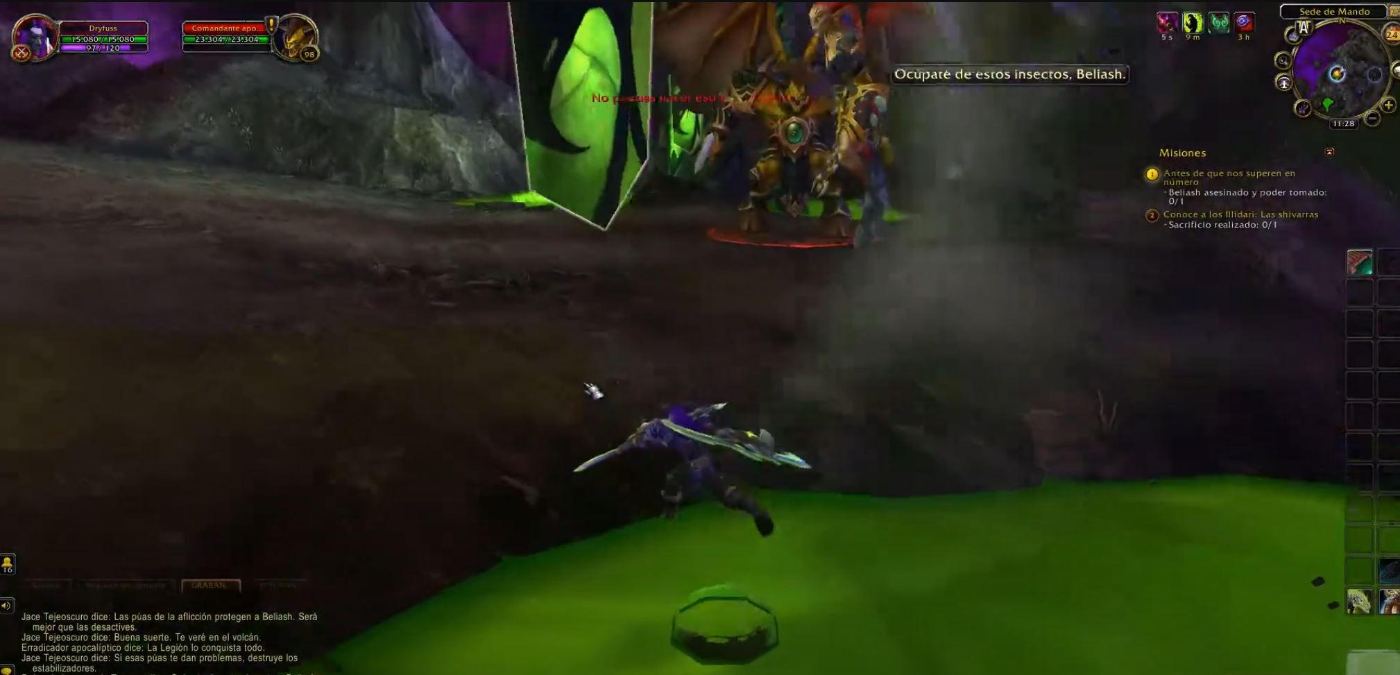 Cuando llego adonde está el objetivo no está el npc Reina de la progenie en el cual tampoco está el diálogo que dicho npc suelta cuando atacamos al comandante.