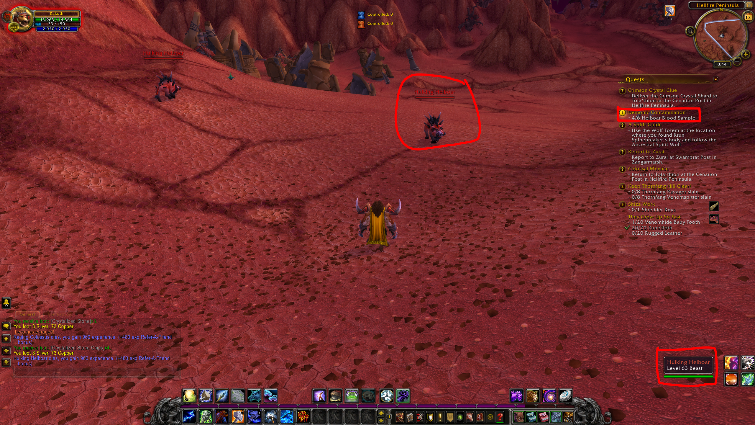 Along with no quest tracking on the enemy or item popup in the bottom left of the screen. Best example is my screenshot and the circled areas.