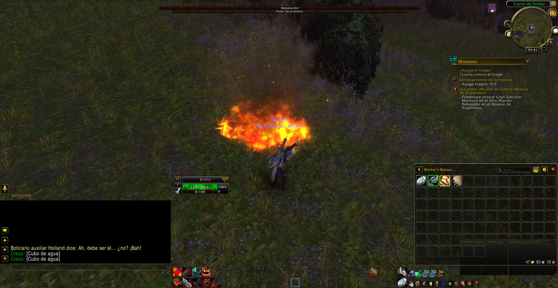 https://www.wowhead.com/quest=11449/fire-training https://www.wowhead.com/item=32971/water-bucket https://www.youtube.com/watch?v=RoUxzp6Wzcc
