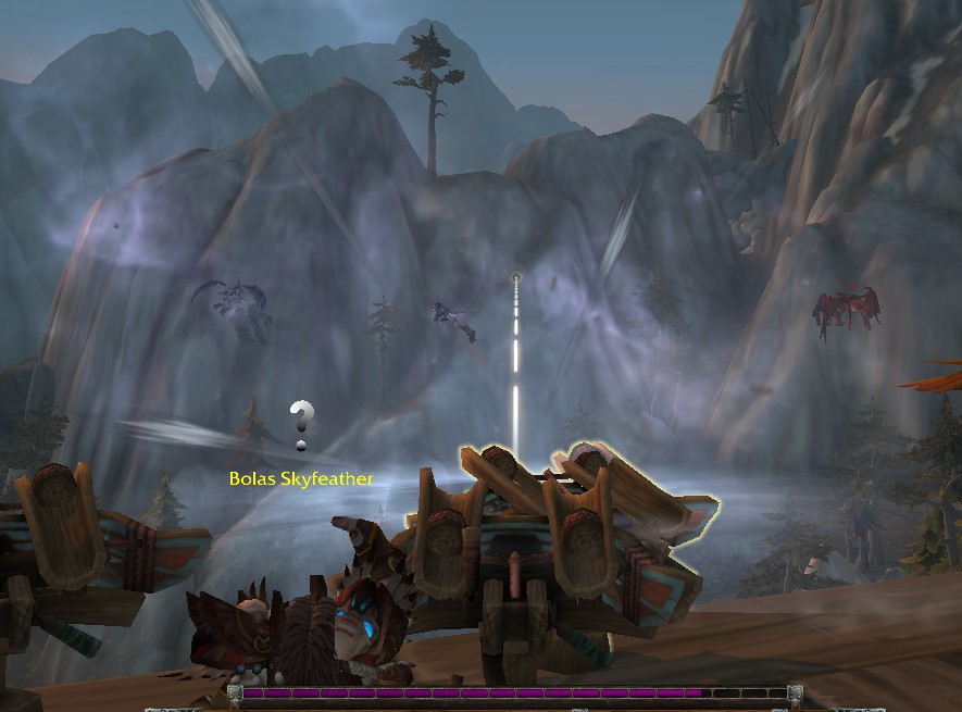 One screenshot shows the bolas spawning in odd spots, the other shows that white smoke area is where it is firing the bolas