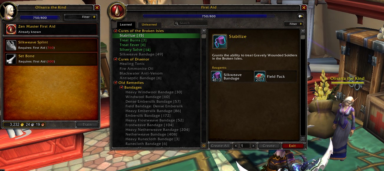 Leveling first aid. Can't seem to hit the craft button for Stabilize, Treat Burns or Treat fever. not sure if I need to do a quest but nothing popped up at the trainer.