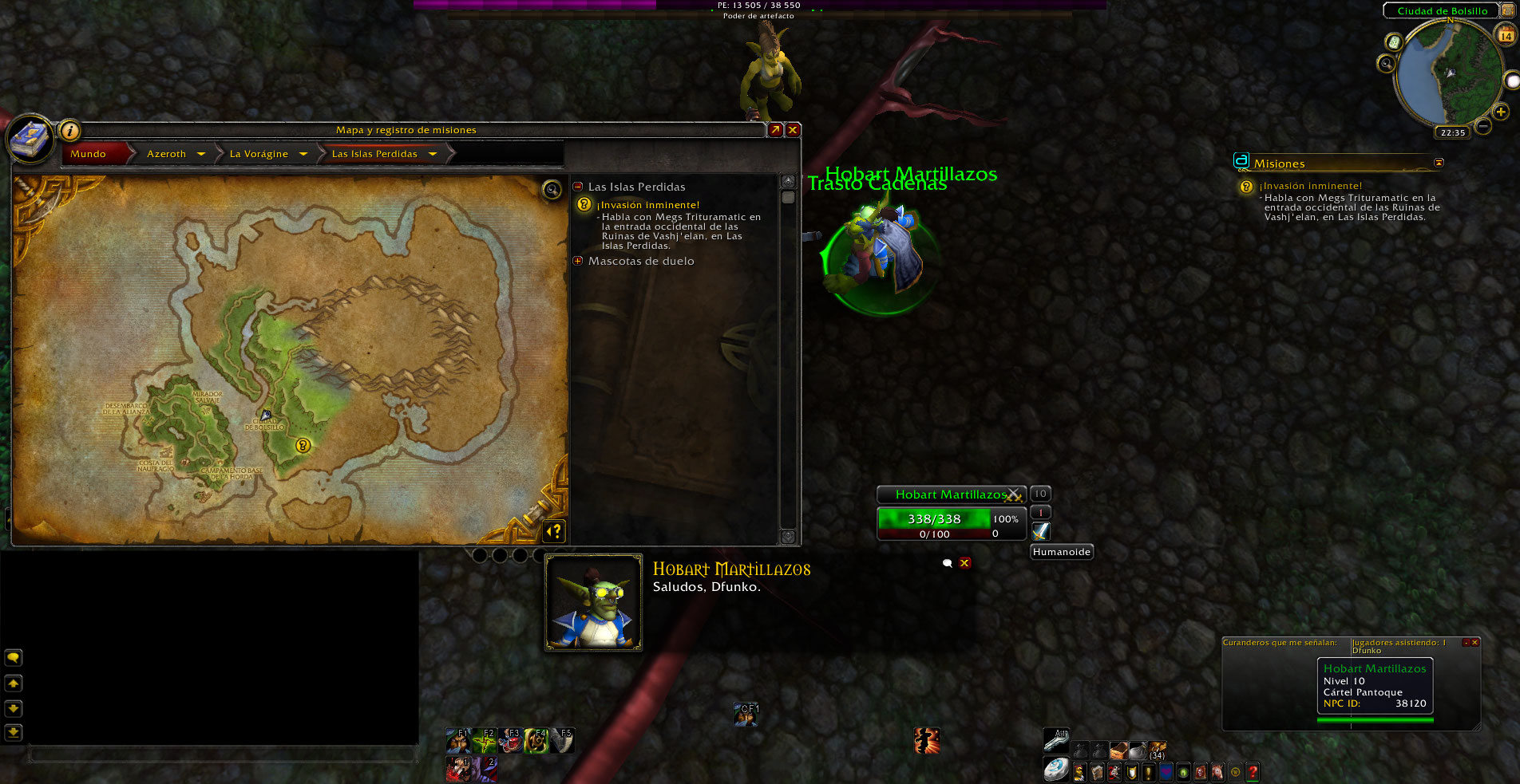 El NPC Geargrinder Gizmo esta en un lugar que según WoWhead no debería estar y esta muy cerca al NPC Hobart Grapplehammer, haciendo complicado agarrar las misiones que este ultimo da..