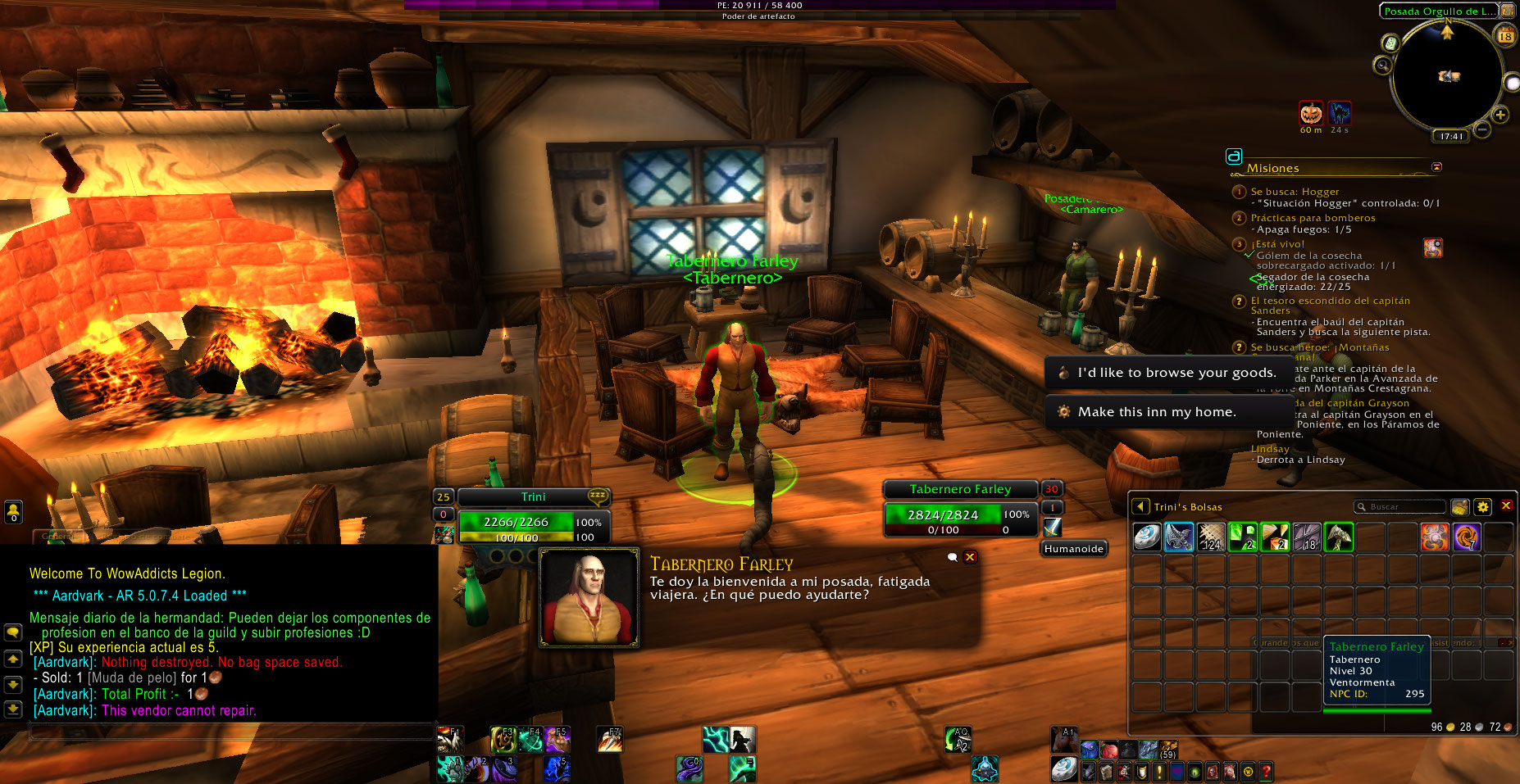 En el NPC Caregiver Chellan (de momento es el unico NPC con quien se puede hacer) se puede dar varias veces a la opción Trick or treat, cuando debería de poder hacerse cada 60min por tener el debuff, pero aun con el debuff se puede seguir obteniendo trajes y varias Treat Bag que deberian contener diversos items, en la expansión actual esta bosa ya no se obtiene, para saber sus items se debe buscar en la pagina de wow classic, también adjunto ese enlace.