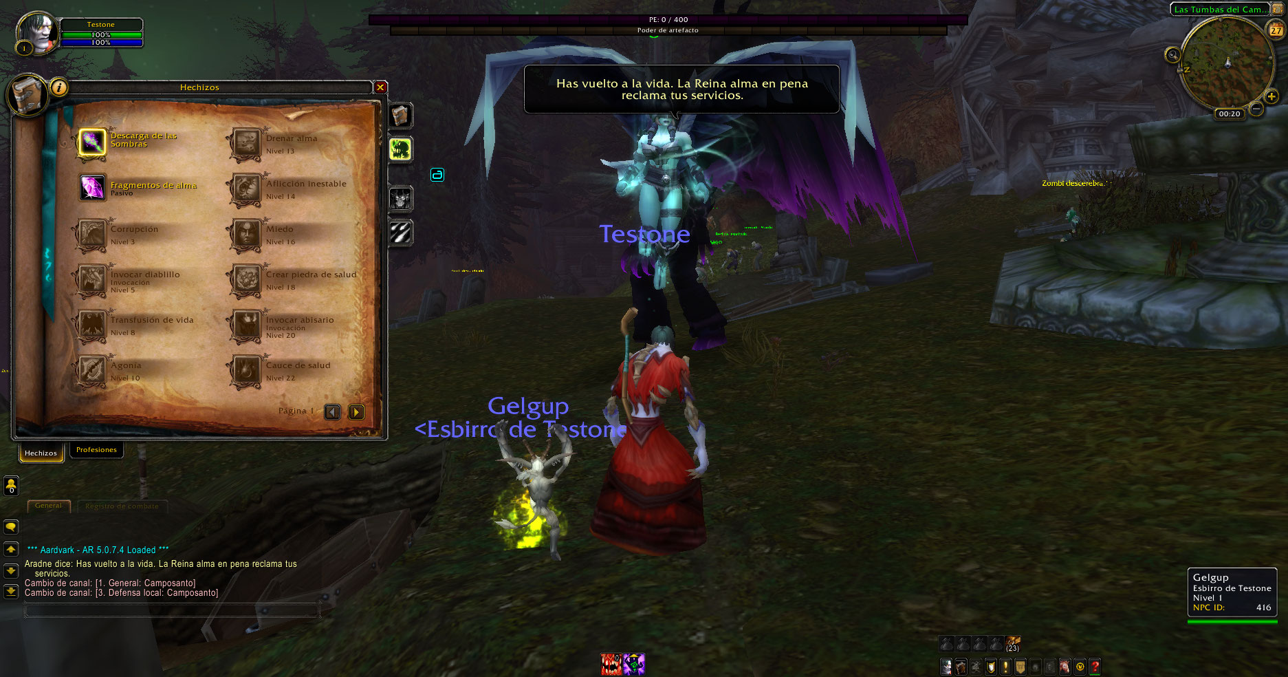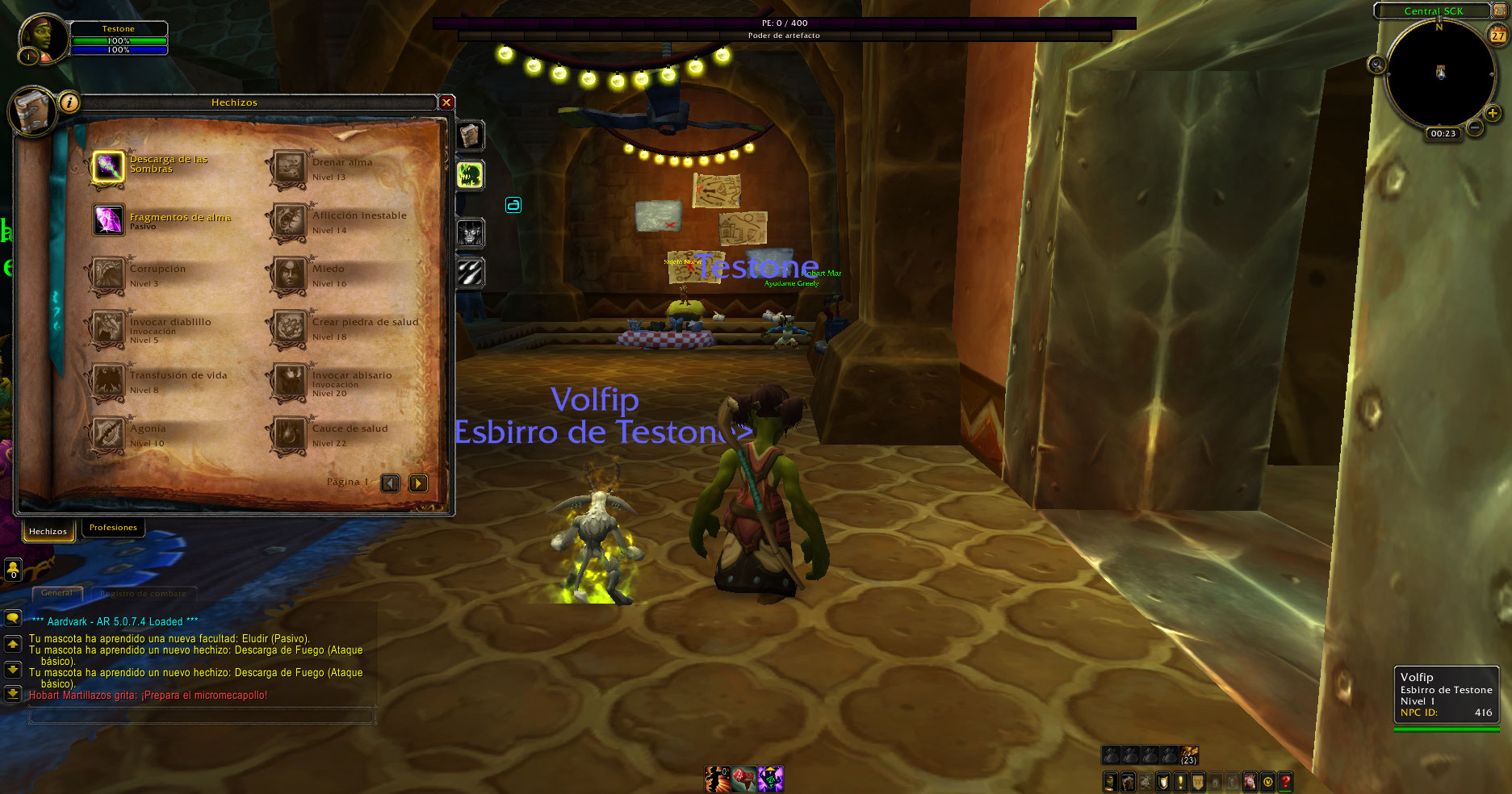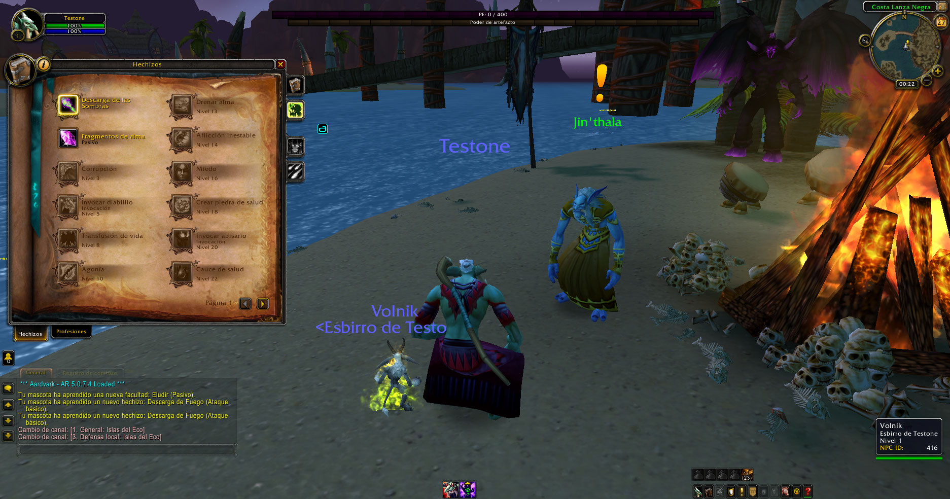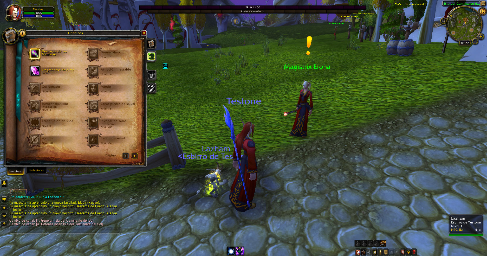 Al crear un brujo aparece la mascota Imp, pero no ataca, según el libro de hechizos de Legión el brujo en nivel 5 recién aprende el poder invocarlo, esto sucede con humanos, enanos, gnomos, huargen, orcos, no-muertos, troll, elfos de sangre y goblins, luego de desconectarse y volver a conectar desaparece la mascota, pero da sensación de que estaría bug.