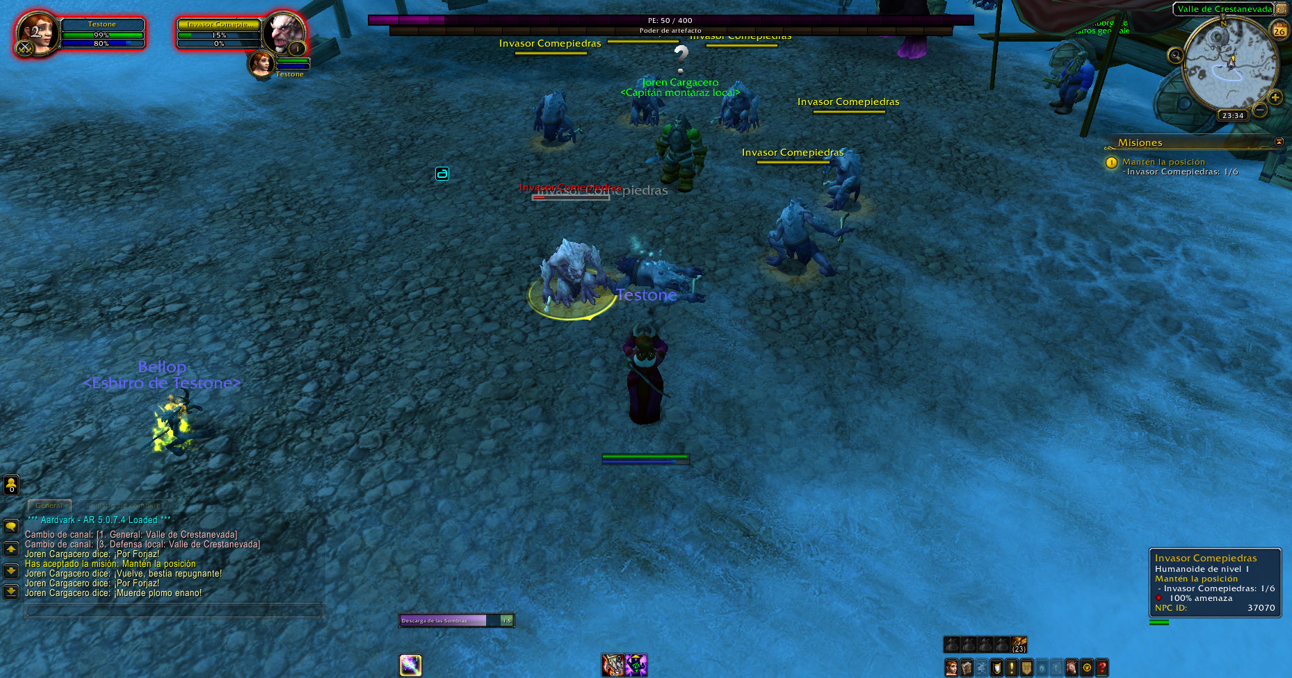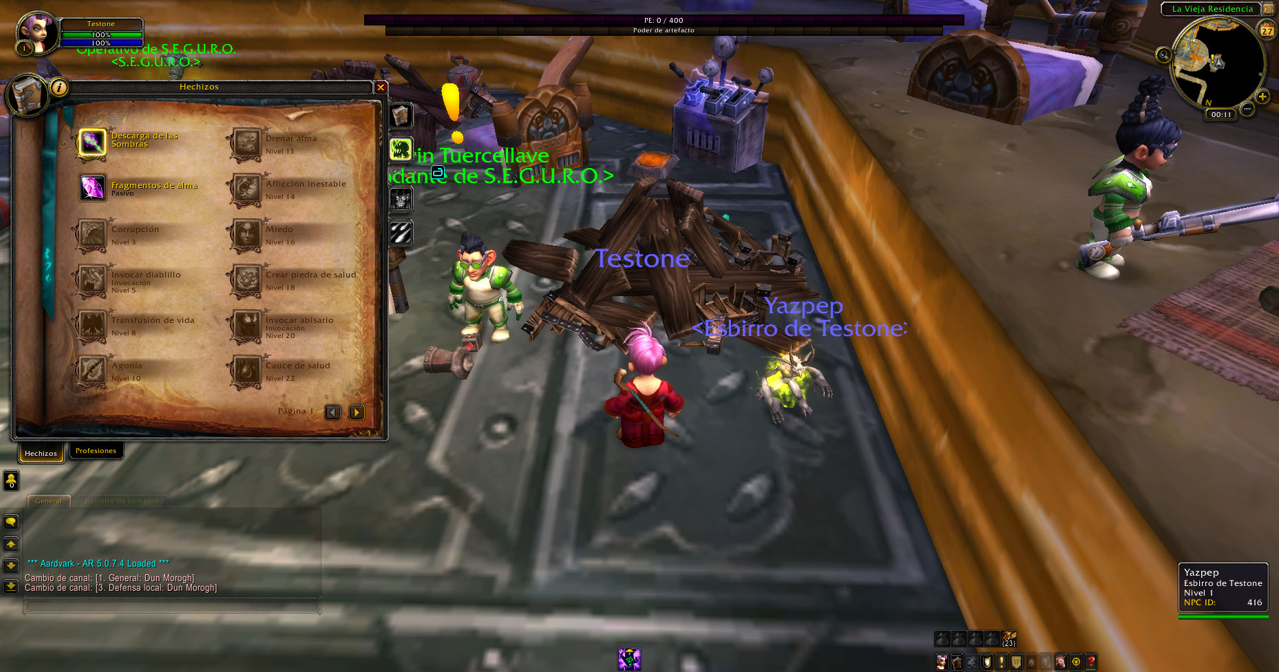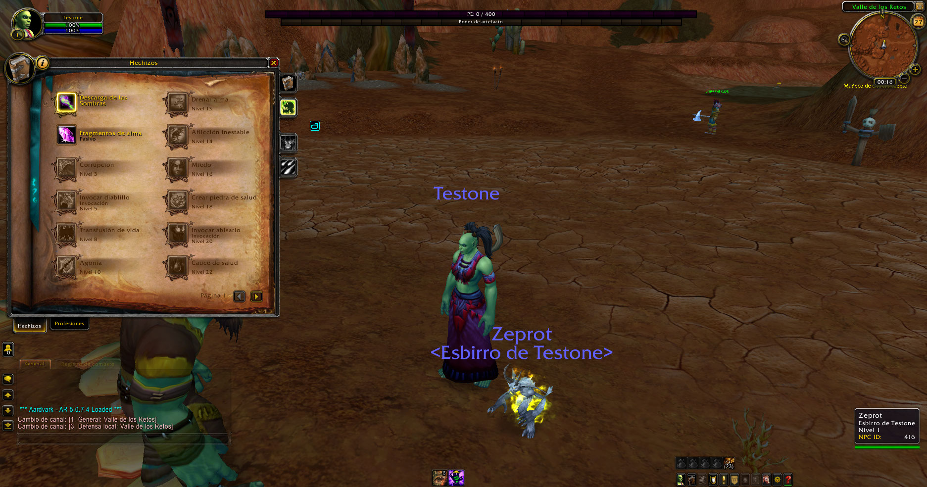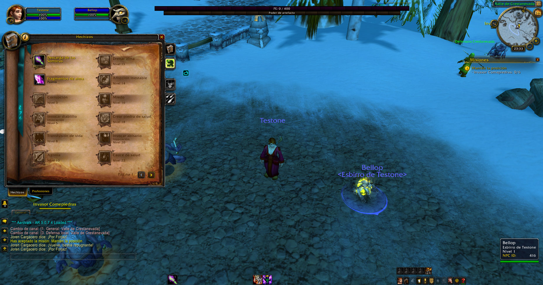 Al crear un brujo aparece la mascota Imp, pero no ataca, según el libro de hechizos de Legión el brujo en nivel 5 recién aprende el poder invocarlo, esto sucede con humanos, enanos, gnomos, huargen, orcos, no-muertos, troll, elfos de sangre y goblins, luego de desconectarse y volver a conectar desaparece la mascota, pero da sensación de que estaría bug.