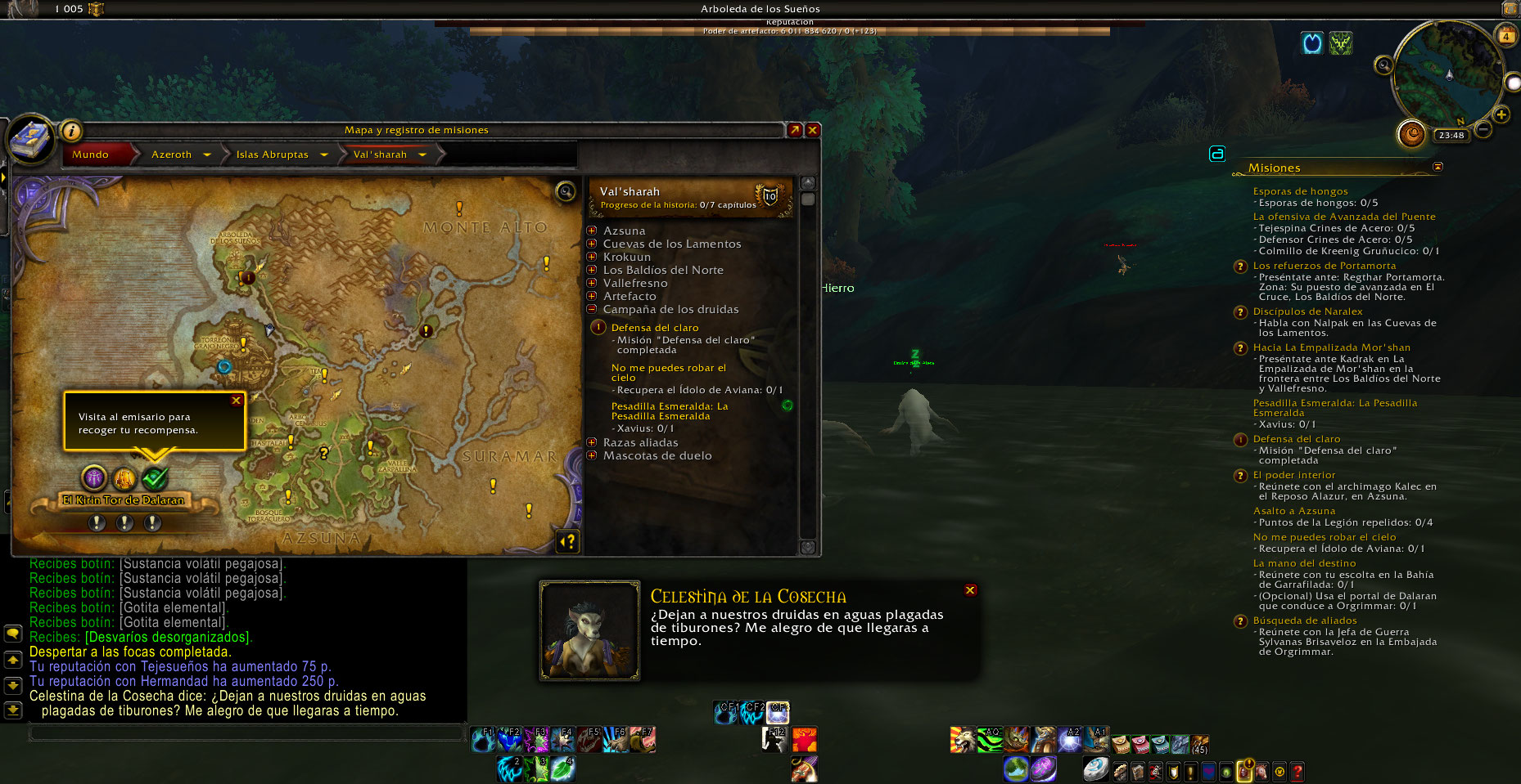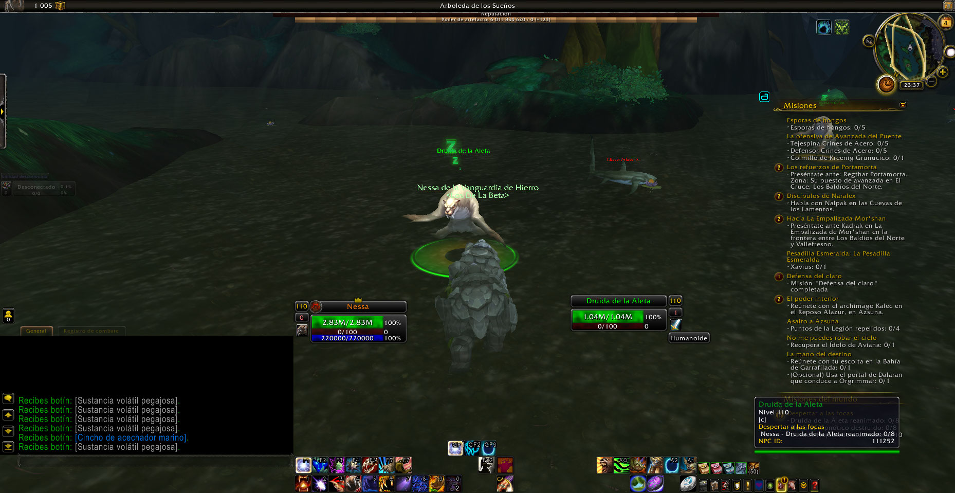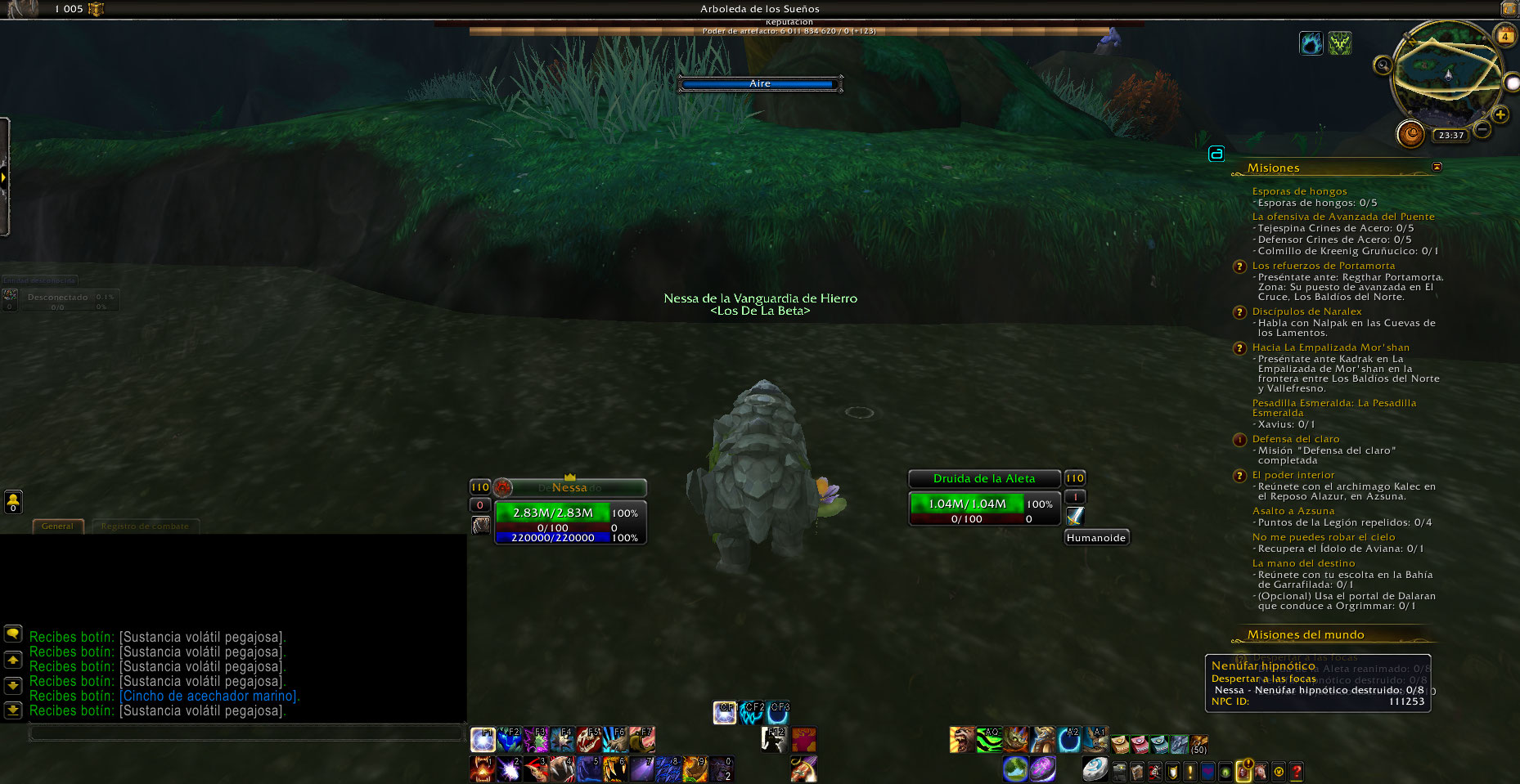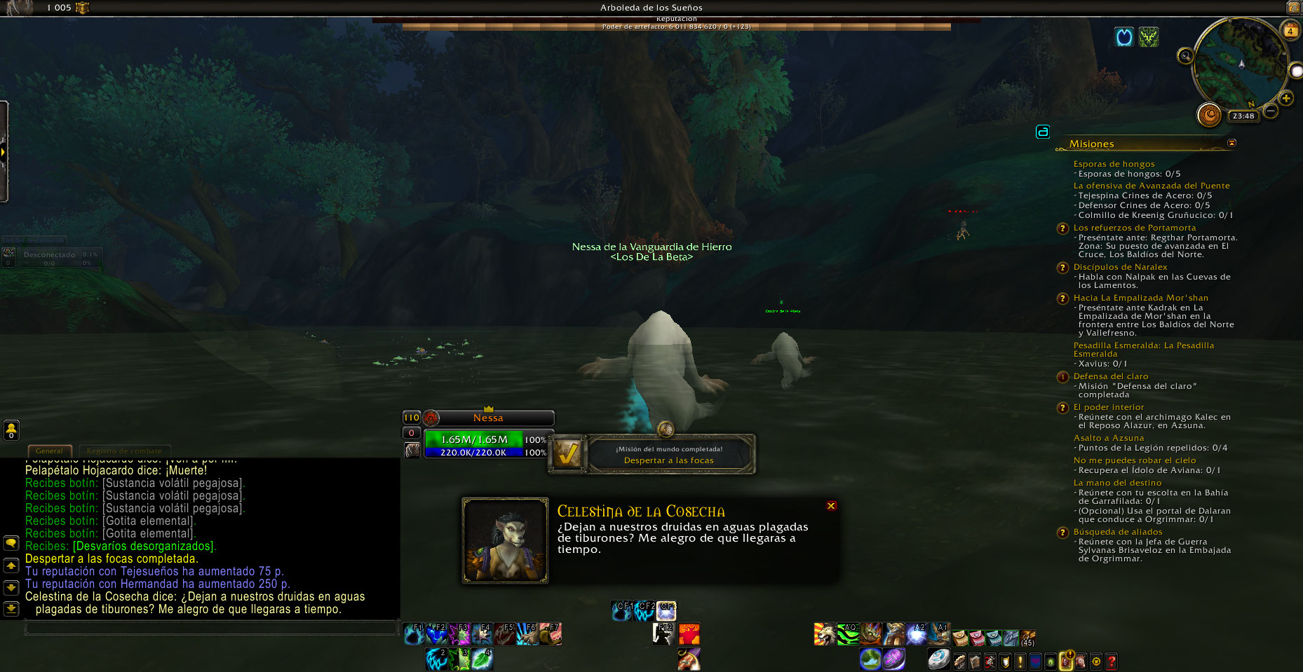 La misión se puede hacer, pero solo cuentan los NPCs que estan mas al norte, los que están al sur no cuentan aunque se les de click, esto pasa tanto con los Hypnotic Water Lily y Druid of the Fin del sur.