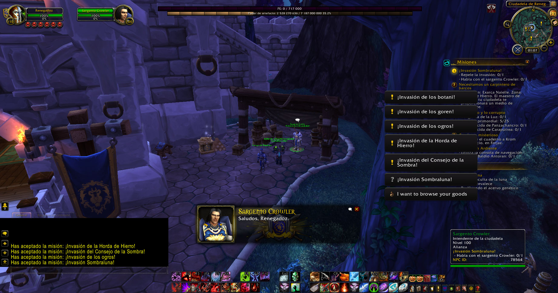 https://www.wowhead.com/quest=37289/shadowmoon-invasion https://www.wowhead.com/es/npc=78564/sargento-crowler https://www.youtube.com/watch?v=mZfkQEOTBrU