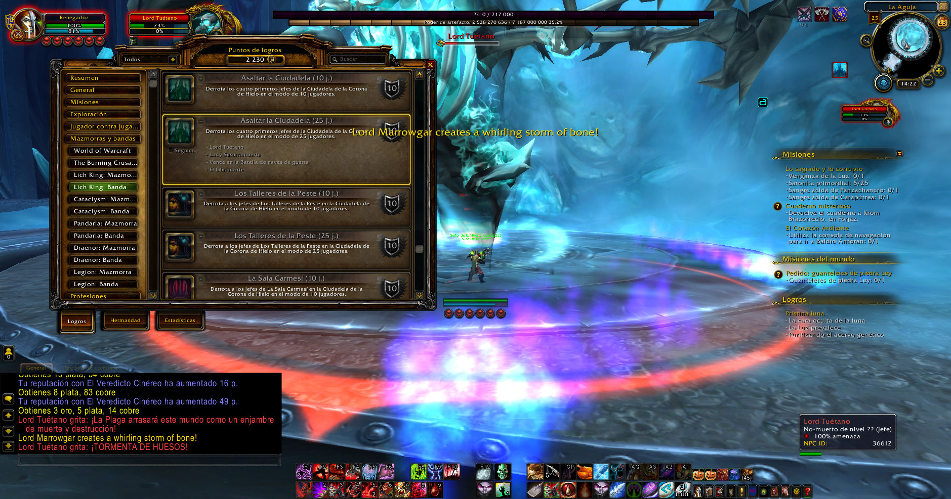 Pese a matar al boss Lord Marrowgar con golpes basicos y nunca empalo, no me dio el logro Boned ni se marco en el logro Storming the Citadel.