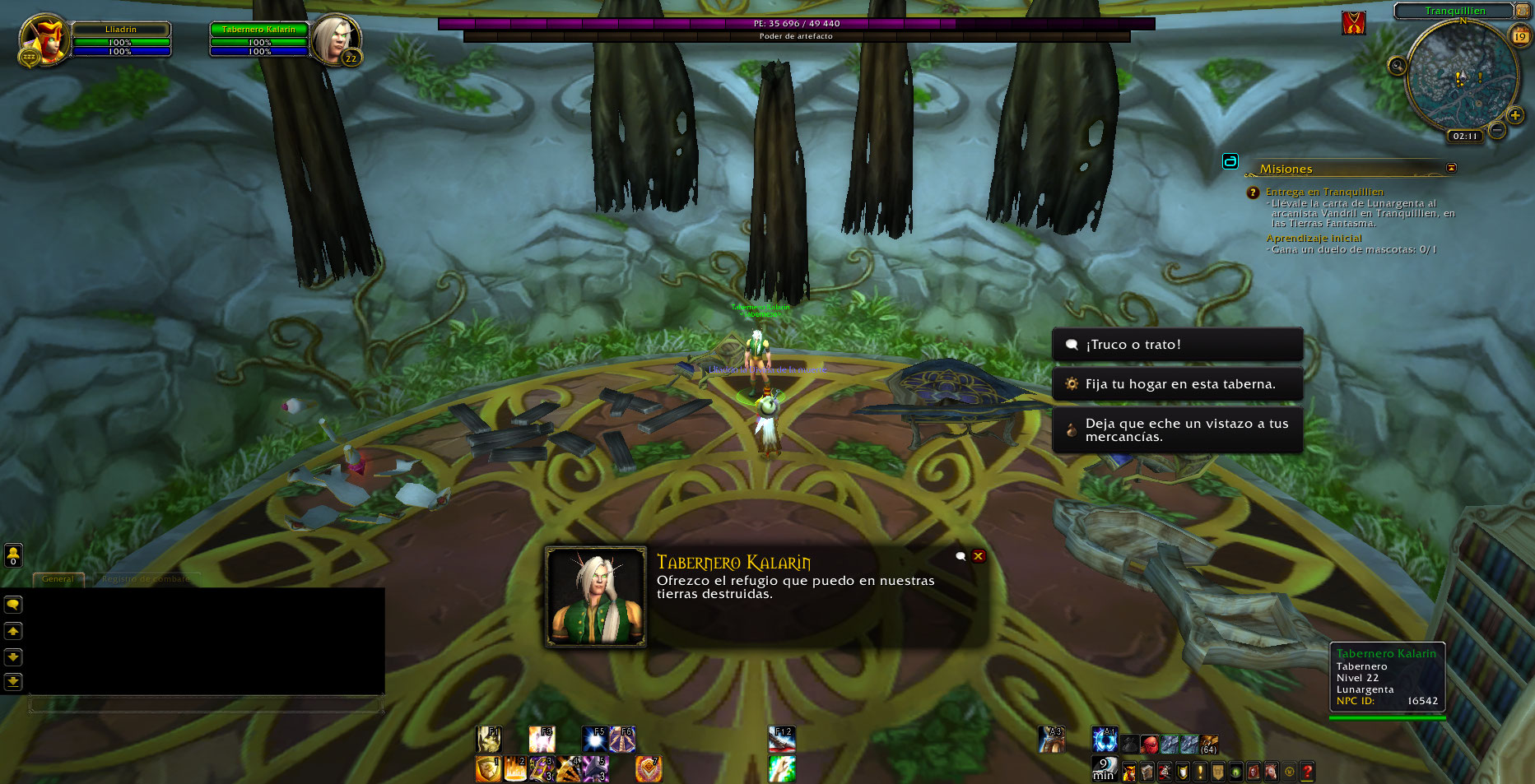 El NPC Innkeeper Kalarin ya tiene activo la opción de Truco o Trato que pertenece al evento de Halloween.