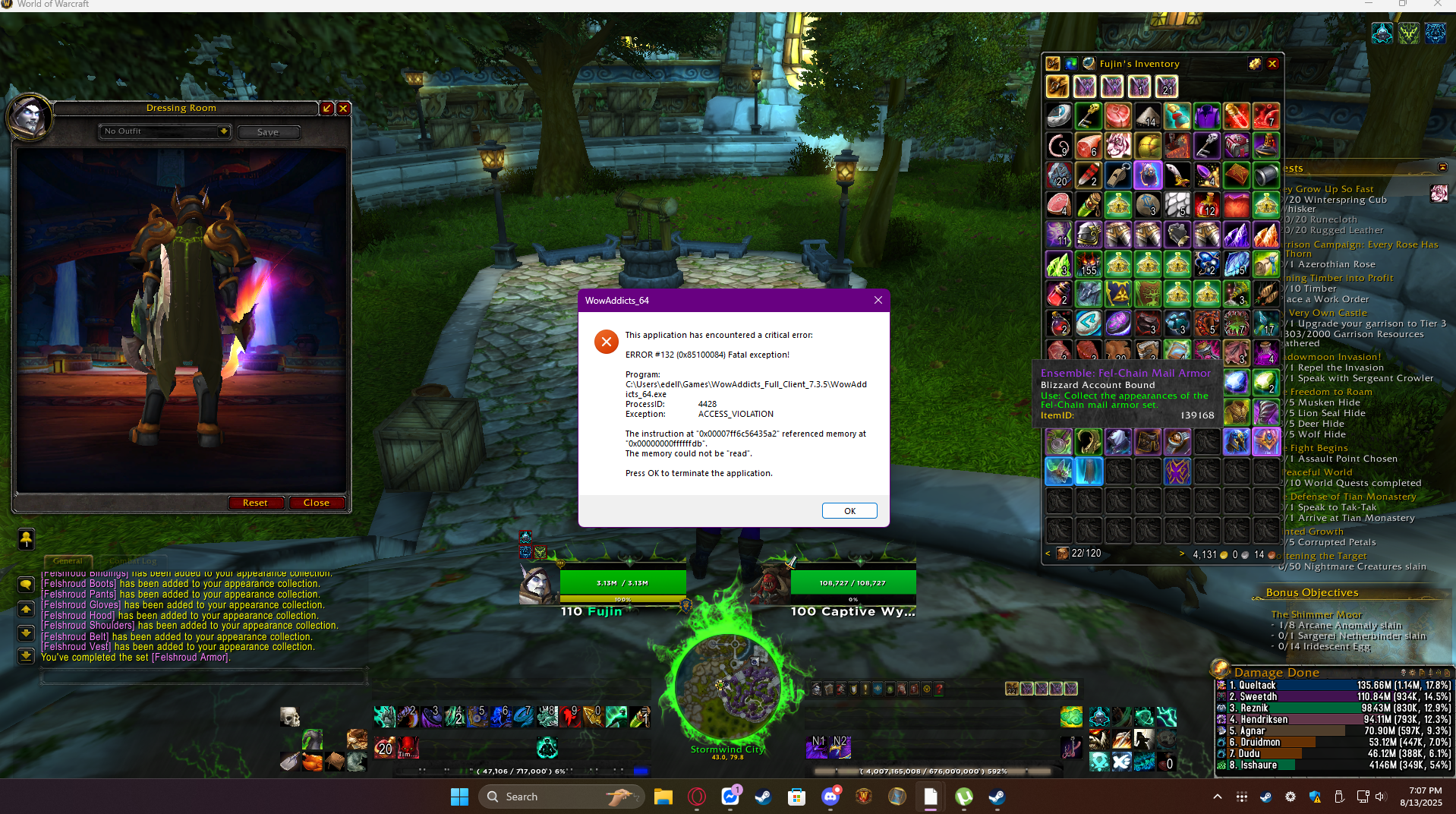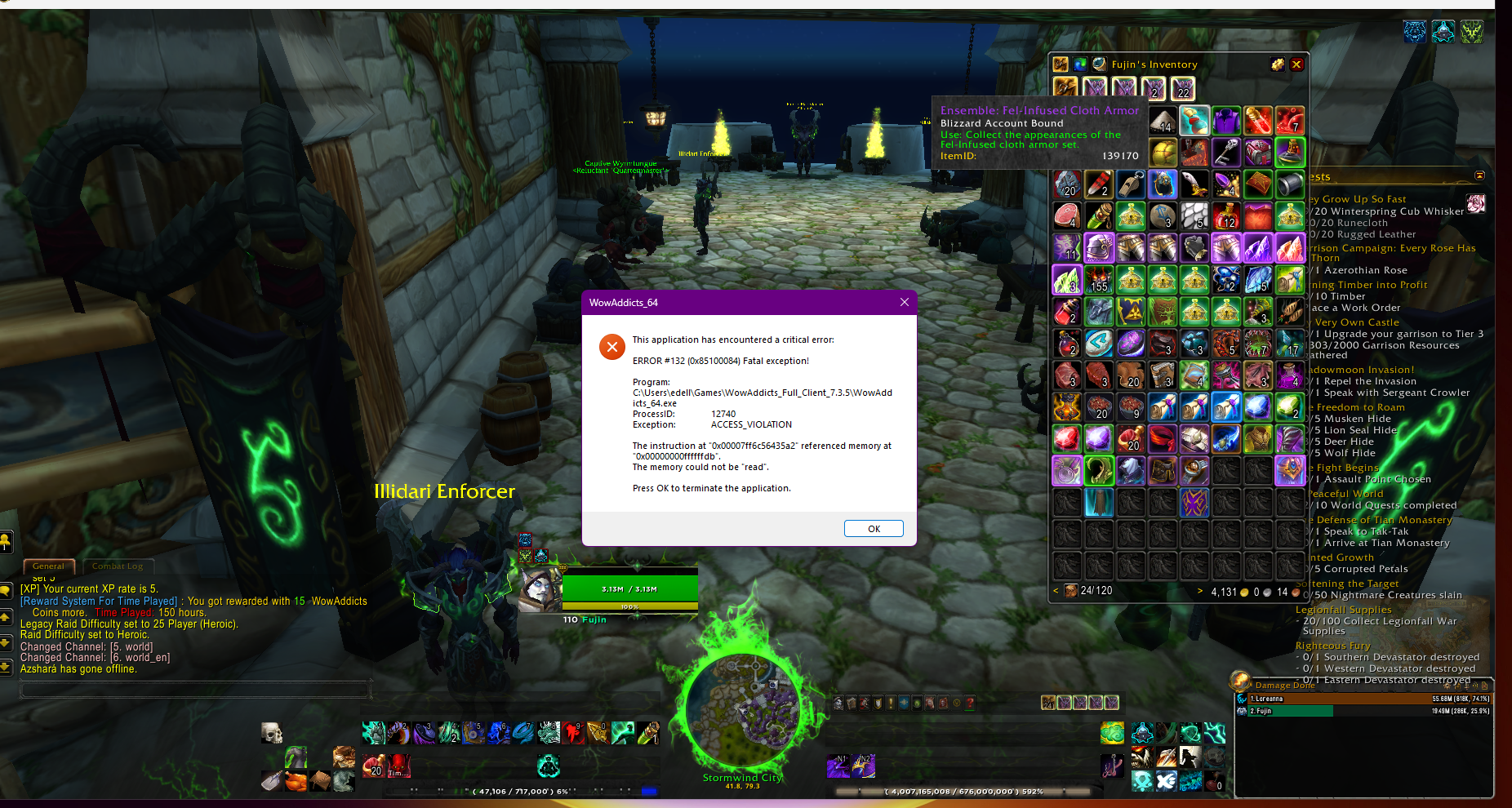 FS#1287 - When Redeeming "Ensemble: Fel-Infused Cloth Armor" You crash.