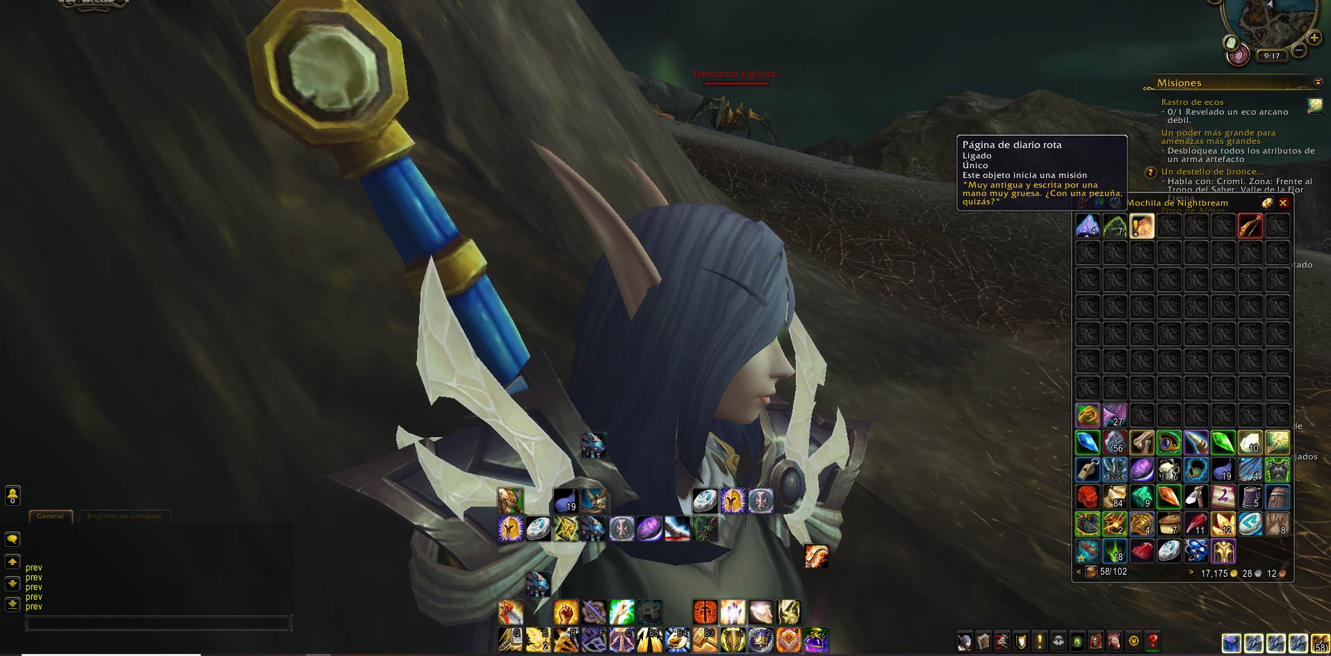 Buenas noches, actualmente vengo subiendo la profesión de minería de legión y dentro del farmeo de los minerales arrojo un item de mision que se llama [Página de diario rota], pero al darle el click para iniciar el mismo, arrojo como mensaje PREV, y no permite iniciar dicha misión, por favor solicito que lo puedan revisar. Adjunto la imagen correspondiente. Saludos Cordiales