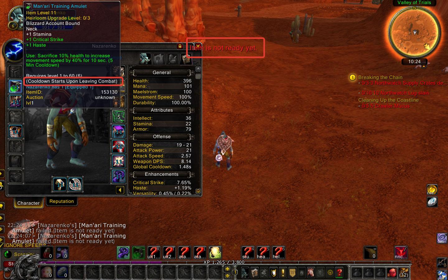 cd of "Man'ari Training Amulet" (and etc) starts only after restart wow.exe
