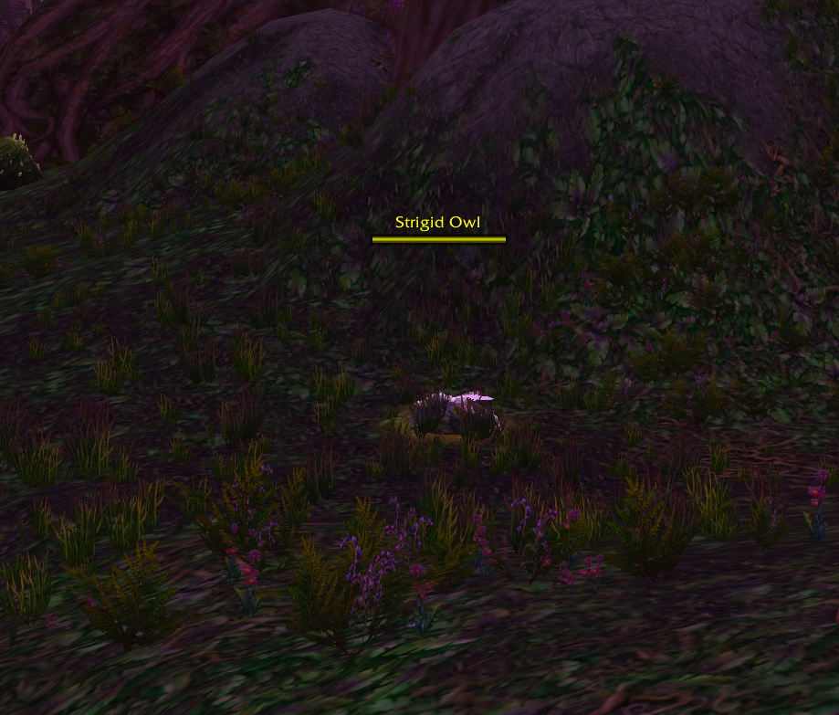 I was leveling a night elf and doing the Zenn's Bidding quest and I noticed that the Strigid Owls have really wild flight paths and just go through terrain. The attached photo isn't an amazing example of this, but it's pretty much constant.