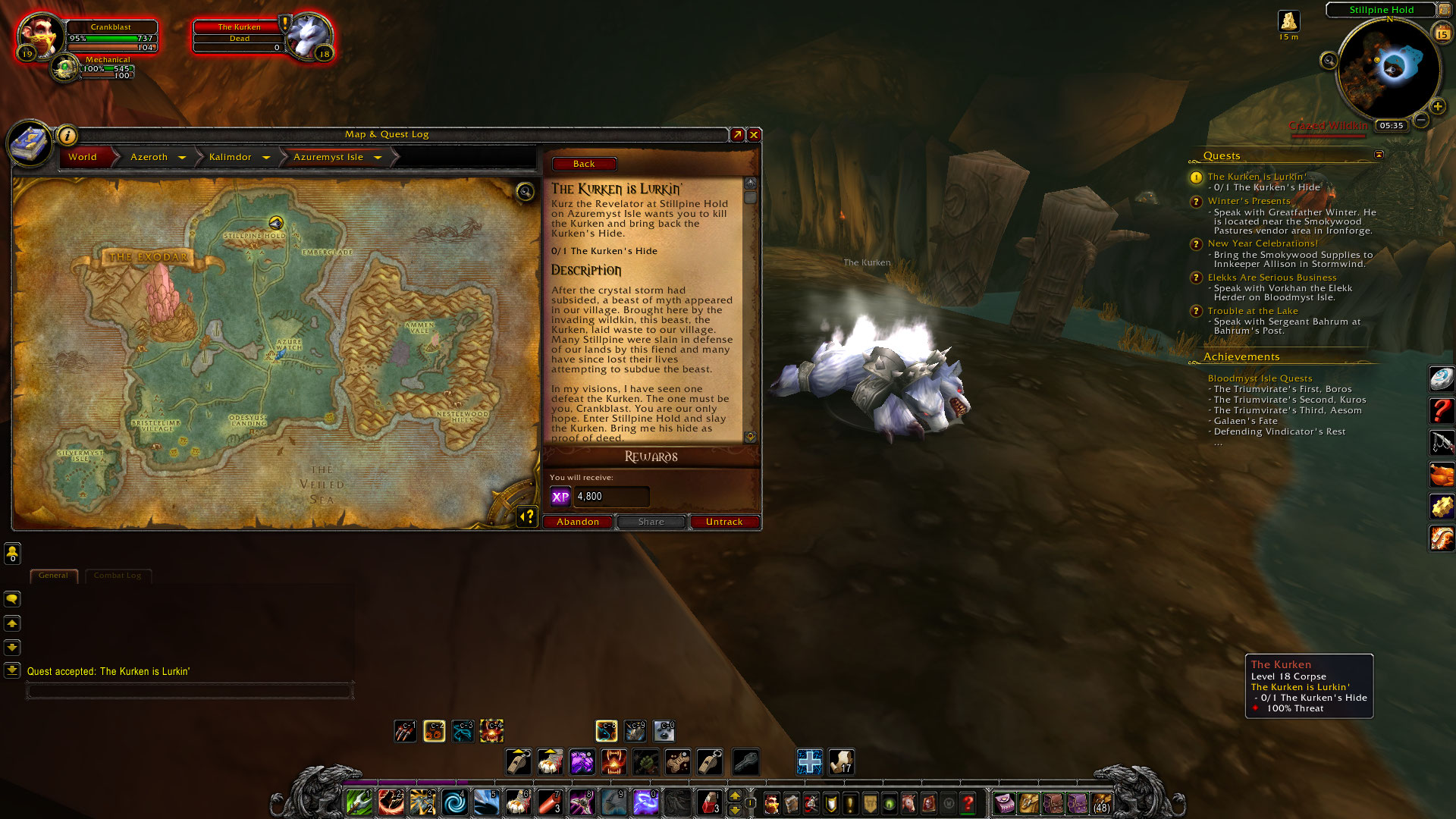 https://www.wowhead.com/quest=9571/the-kurkens-hide https://www.wowhead.com/npc=17447/the-kurken https://www.wowhead.com/item=23860/the-kurkens-hide